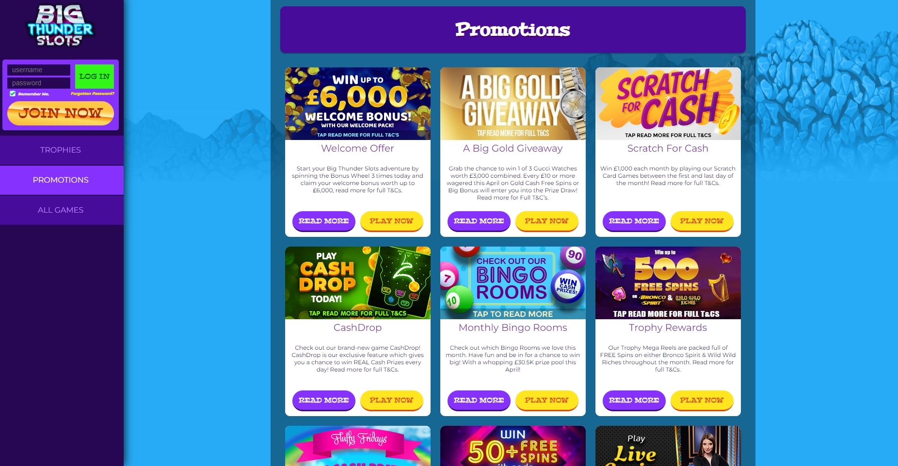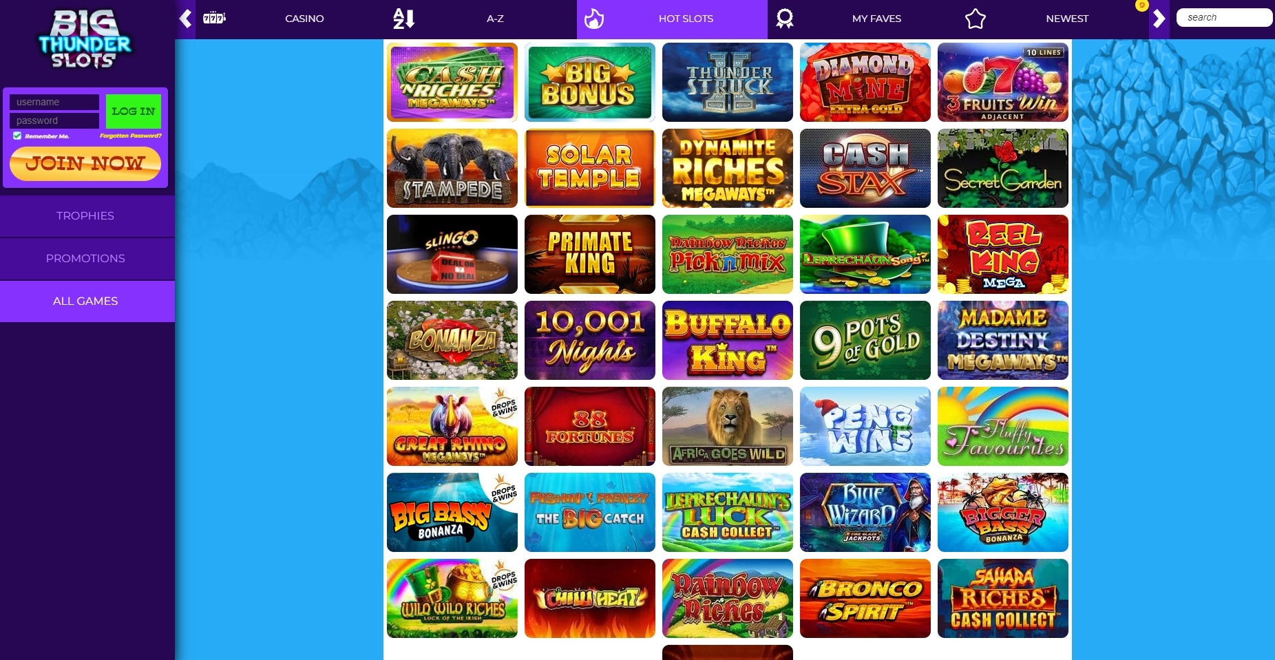 Not to be confused by the Microgaming slot of the same name, Big Thunder Slots UK has been operating since May 2018. While still relatively new to the scene, it’s gained a solid following of loyal gamers, their impressive selection of varied slots being the primary selling point. But if spinning colourful slots isn’t your thing, Big Thunder Slots bingo is also on offer with 5 rooms available to join. With quick and easy deposit/withdrawal processes and a friendly customer support team, this site is definitely worth visiting if you’re a slot lover. This site is appealing from the very moment that you first point your Web browser towards it. You will be greeted by a colourful banner that demonstrates the bonus opportunities that await you here. The thumbnails, as the name implies, are big and bold. You will see quite a few games located right there for you to get up the energy to play. As you begin poking around, you will quickly discover that there really is a great deal to choose from here, yet the menu will make it is easier to narrow that down a bit.