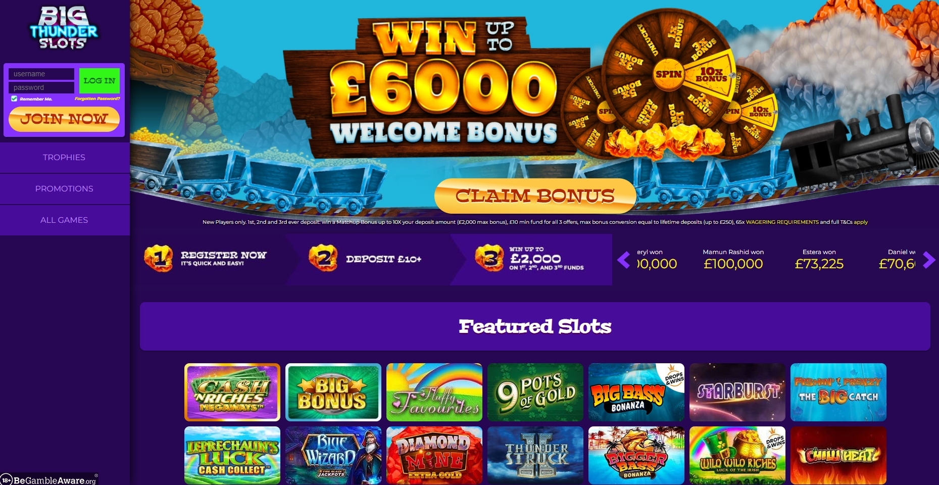 Not to be confused by the Microgaming slot of the same name, Big Thunder Slots UK has been operating since May 2018. While still relatively new to the scene, it’s gained a solid following of loyal gamers, their impressive selection of varied slots being the primary selling point. But if spinning colourful slots isn’t your thing, Big Thunder Slots bingo is also on offer with 5 rooms available to join. With quick and easy deposit/withdrawal processes and a friendly customer support team, this site is definitely worth visiting if you’re a slot lover. This site is appealing from the very moment that you first point your Web browser towards it. You will be greeted by a colourful banner that demonstrates the bonus opportunities that await you here. The thumbnails, as the name implies, are big and bold. You will see quite a few games located right there for you to get up the energy to play. As you begin poking around, you will quickly discover that there really is a great deal to choose from here, yet the menu will make it is easier to narrow that down a bit.